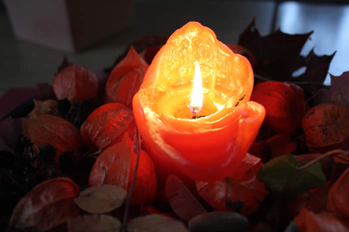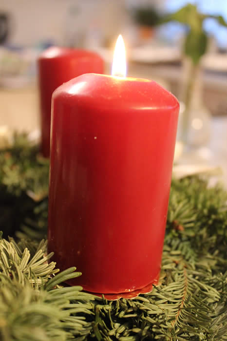 5. Laß warm und hell die Kerzen heute flammen,